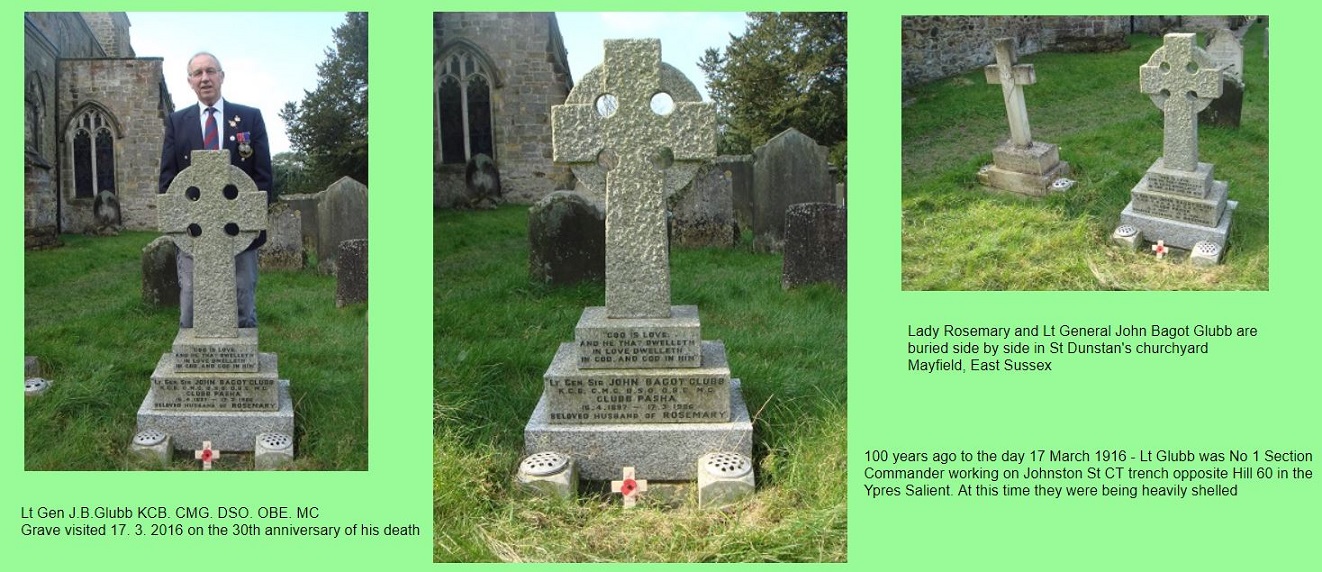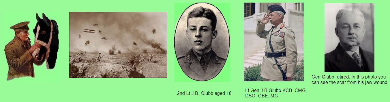 Lieutenant General J.B. Glubb KCB. CMG. DSO. OBE. MC, started his army career with 7 Field Company RE, joining the Company 28 November 1915 as a Second Lieutenant in command of No 1 Section (troop or platoon strength).