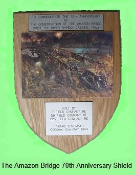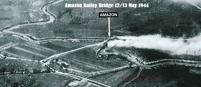 Amazon Bridge built under heavy enemy fire by the Royal Engineers of 4 BR DIV on the 12/13 May 1944. 225 Field Company - 7 Field Company - 59 Field Company.